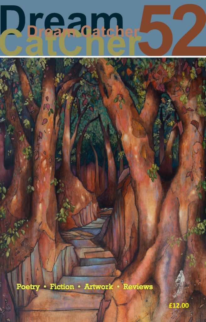 But, as always, the brown envelopes that flopped onto my doormat also contained wit and warmth and wackiness. God clearly needs an assistant to complete the job (though are there enough women around to apply the Bechdel test to the book of Genesis?). A three year old relishes the mouthfeel of a new word. Spring and autumn love warm the cockles of the most jaded heart. At least, ‘we very rarely eat our spouse’. We also flag up the successes of poets whose work was shared through previous issues of Dream Catcher – new books are published or forthcoming by (among others), Emily Zobel Marshall, Elaine Ewart, Sue Butler, Philip Burton, Gerald Killingworth, Clive Donovan, Christopher James, Clifford Liles.